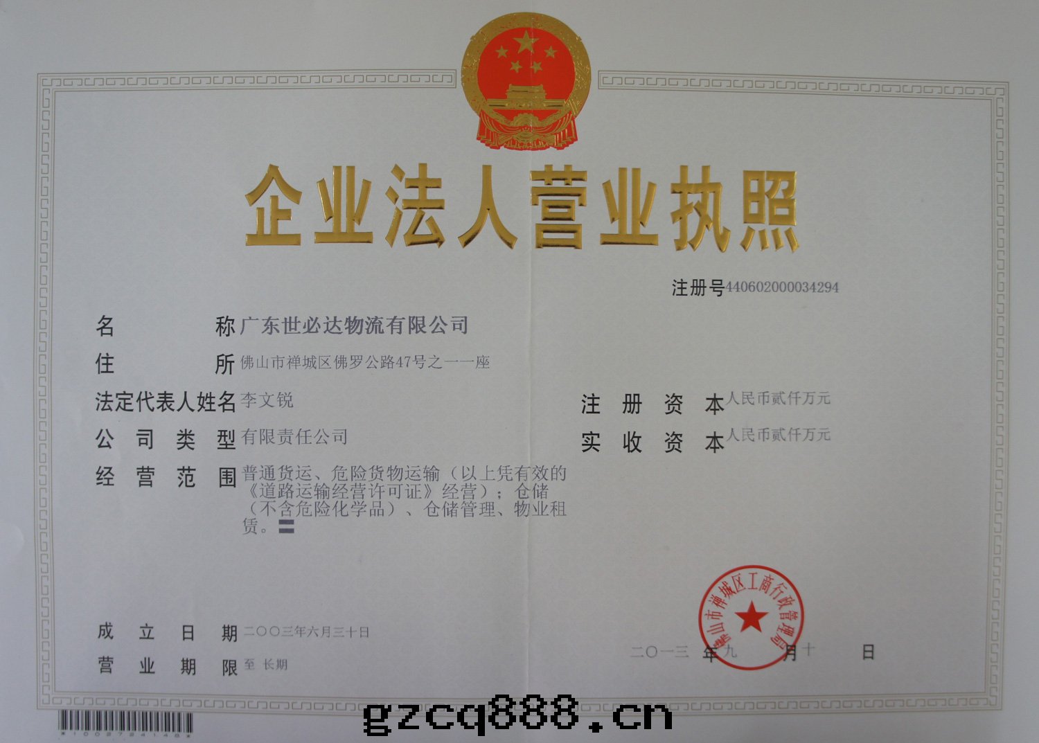2013年(nián)7月(yuè)24日(rì) 佛山(shān)市(shì)世必达(dá)物(wù)流有(yǒu)限公(gōng)司注册(cè)資本(běn)增資至(zhì)2000万元(yuán)
