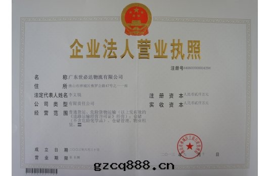 2005年(nián)4月(yuè)26日(rì) 佛山(shān)市(shì)志成物(wù)流有(yǒu)限公(gōng)司更(gèng)名(míng)为(wèi)佛山(shān)市(shì)世必达(dá)物(wù)流有(yǒu)限公(gōng)司