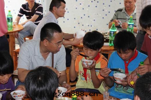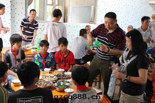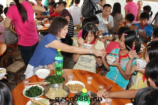 11时(shí)30分(fēn),公(gōng)司老(lǎo)總(zǒng)及(jí)工作(zuò)人(rén)員與(yǔ)全(quán)校(xiào)师(shī)生(shēng)及(jí)該縣(xiàn)扶貧辦(bàn)工作(zuò)人(rén)員一(yī)道(dào)在該校(xiào)食堂共進(jìn)午餐,午餐的(de)全(quán)部(bù)费用(yòng)由(yóu)公(gōng)司承擔。公(gōng)司工作(zuò)人(rén)員與(yǔ)該校(xiào)师(shī)生(shēng)穿插就(jiù)坐,大(dà)家(jiā)边吃边聊,談笑風(fēng)生(shēng),不(bù)少(shǎo)工作(zuò)人(rén)員還(huán)主(zhǔ)動(dòng)給(gěi)學(xué)生(shēng)夾菜,總(zǒng)經(jīng)理(lǐ)助理(lǐ)张(zhāng)惠榮自(zì)己吃得少(shǎo),卻不(bù)停地(dì)給(gěi)同(tóng)桌(zhuō)的(de)小朋友夾菜,供应部(bù)的(de)崔国輝放(fàng)下(xià)碗(wǎn)筷(kuài)給(gěi)在座的(de)小朋友一(yī)个个倒滿飲料,不(bù)少(shǎo)原本(běn)很腼腆的(de)山(shān)區(qū)小朋友露(lù)出(chū)了(le)開(kāi)心(xīn)的(de)笑容。
