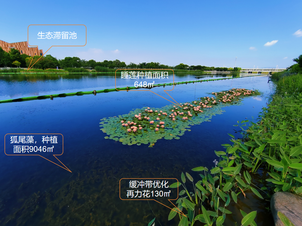 三是以流域生態(tài)緩沖帶構(gòu)建、強(qiáng)化區(qū)域地表徑流攔截和生物生態(tài)環(huán)境。形成了陸域-水域過(guò)渡帶污染攔截,有效保護(hù)河道生態(tài)空間。不僅以生態(tài)系統(tǒng)結(jié)構(gòu)打造形成復(fù)合型生態(tài)屏障,有效控制地表徑流氮磷污染,還提升了生物生境打造,為生態(tài)系統(tǒng)穩(wěn)定和生物多樣性提供了基礎(chǔ)。